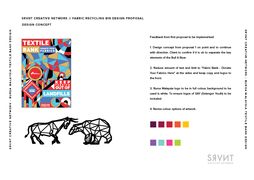 As part of Bursa Malaysia's sustainability goals was to collaborate with Kloth Cares as a fabric recycling partner as part of their Fabric Recycling Campaign. I was engaged to design the artwork for Bursa Malaysia's Fabric Recycling Bin which they called "Textile Bank".