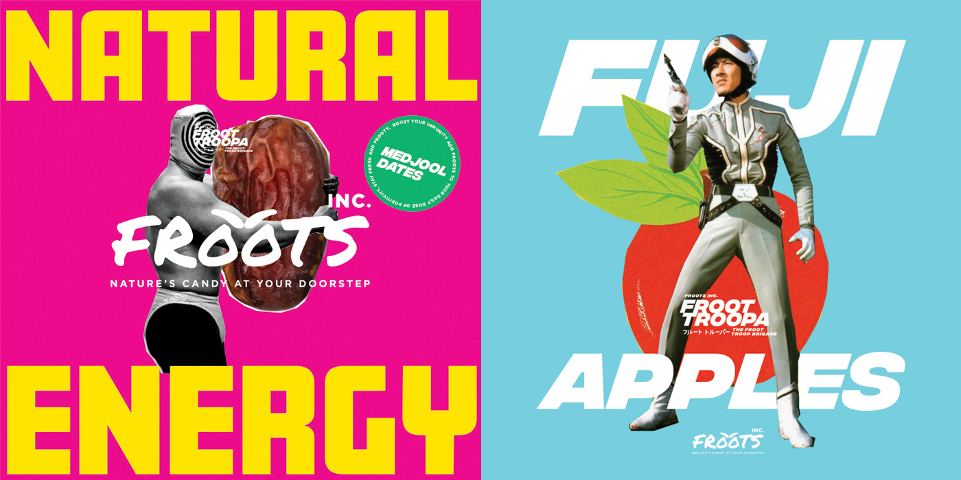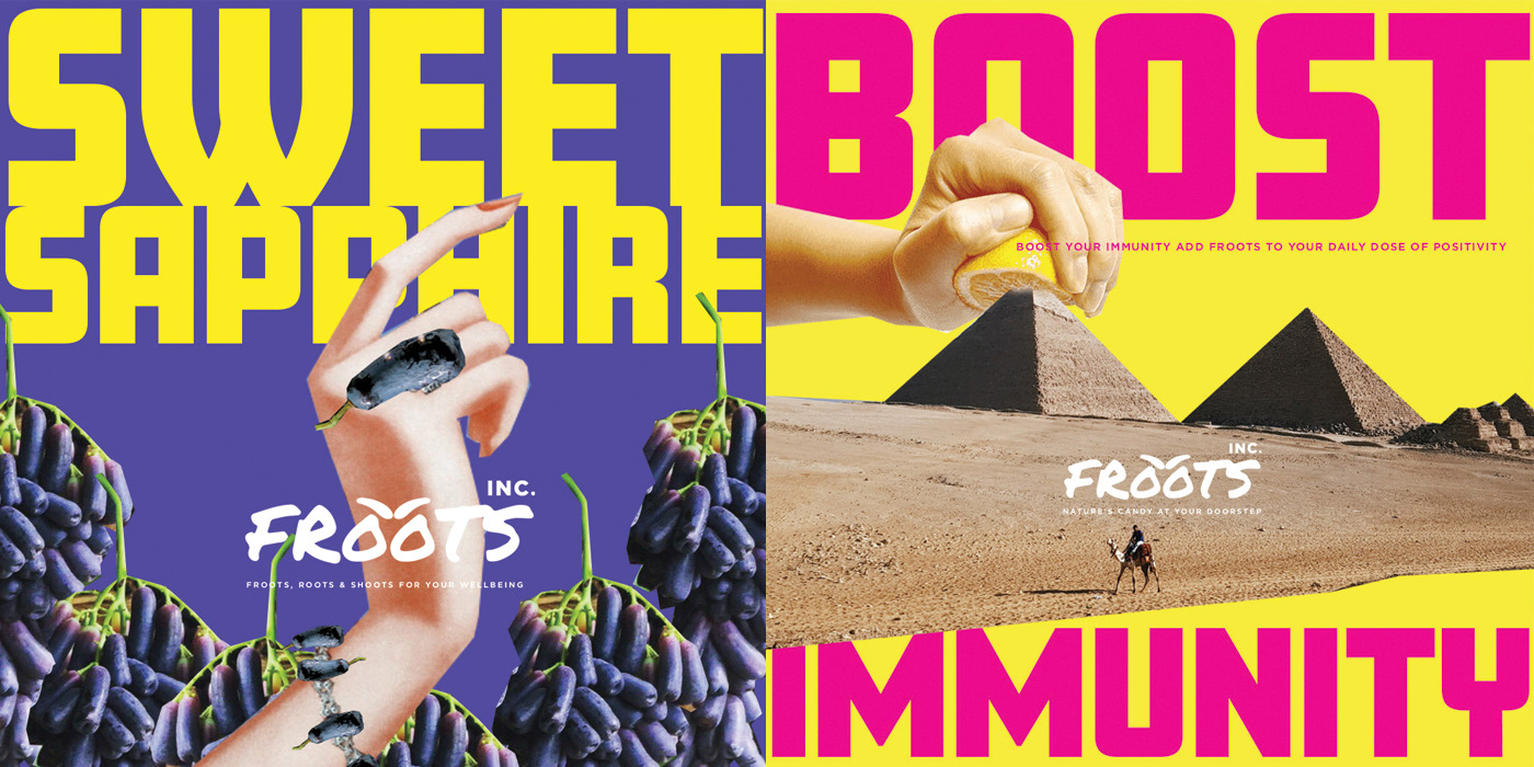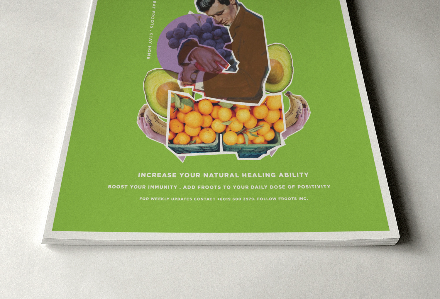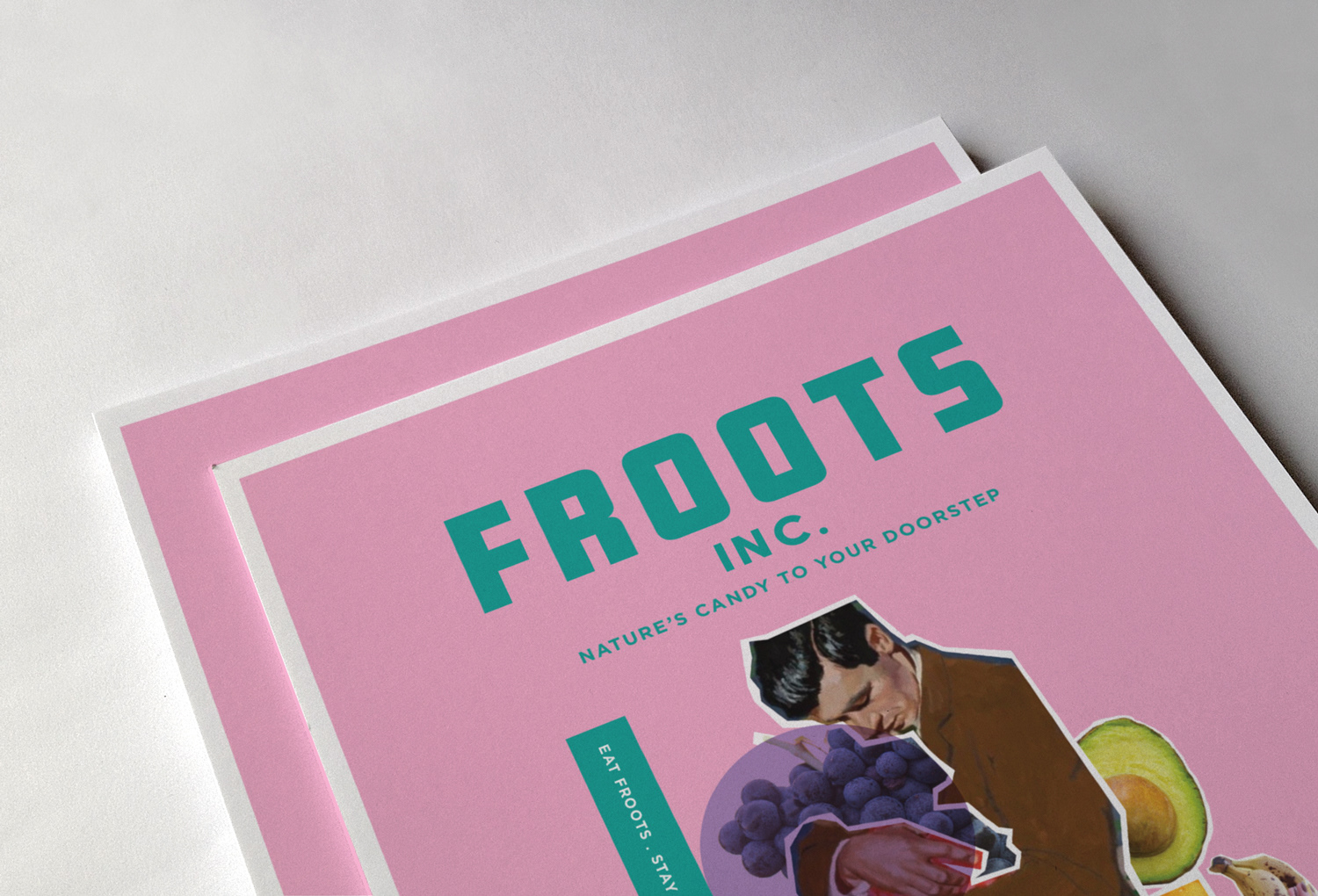Design work for Froots Inc - Distributor of premium and local fruits bringing Nature's Candy to Your Doorstep. Design and concept using collage approach by SRVNT Creative Network.