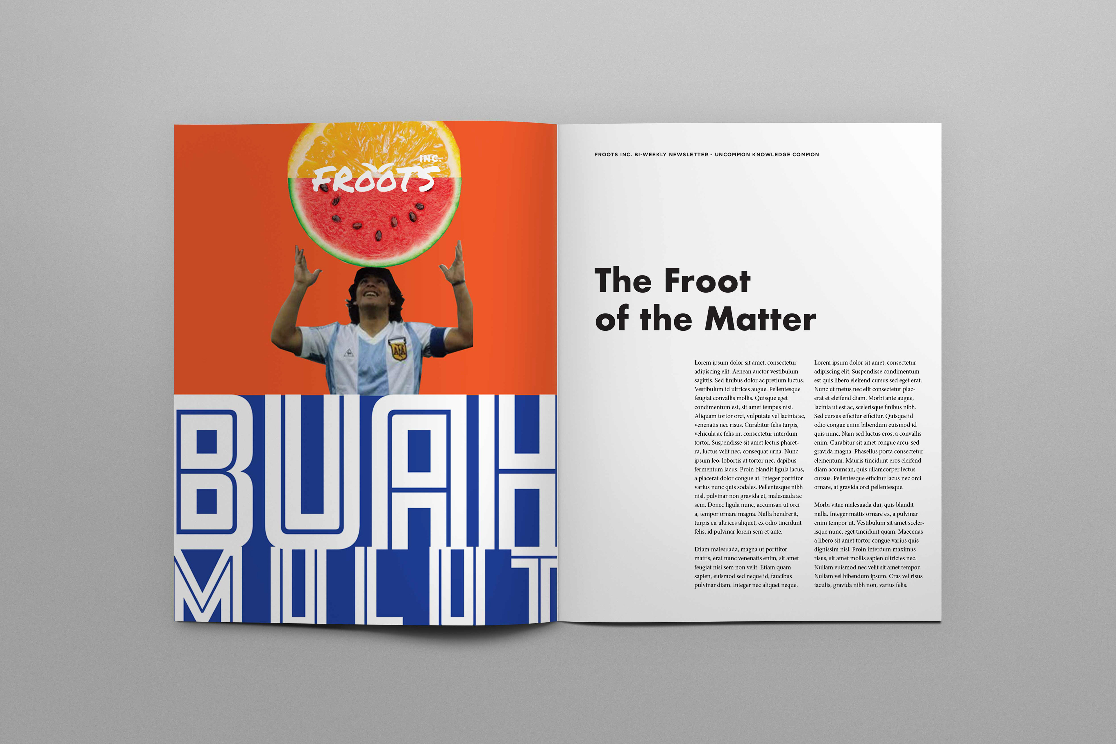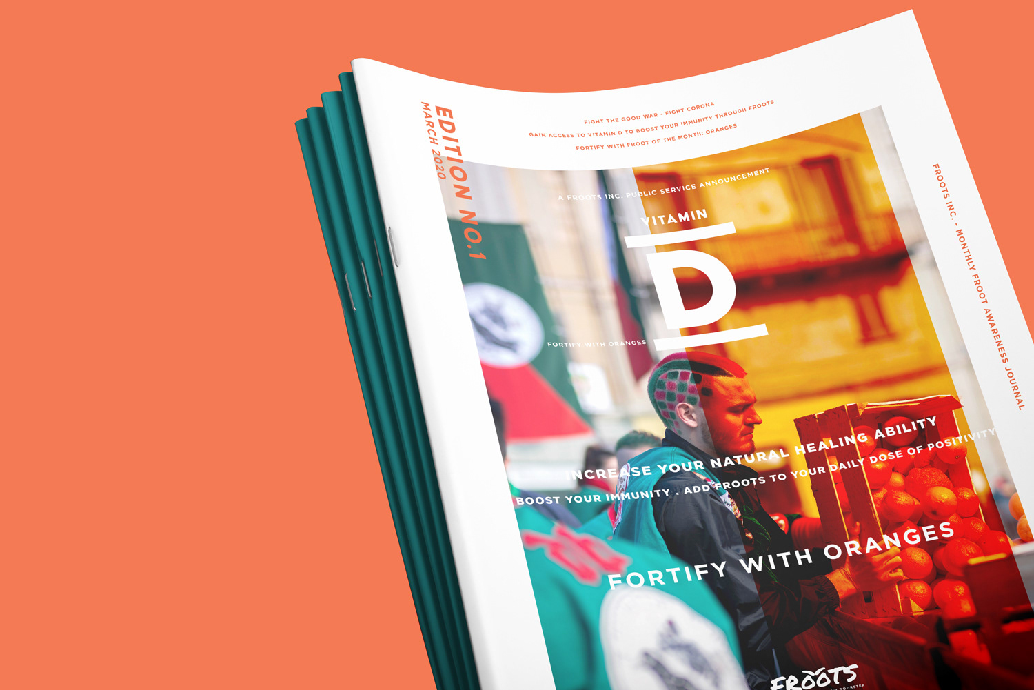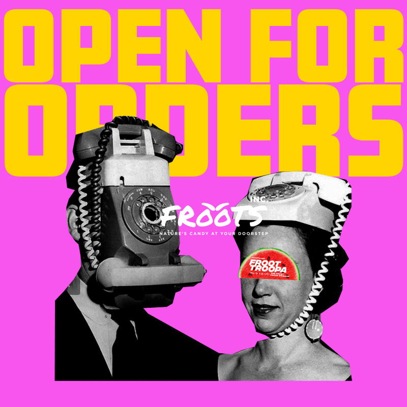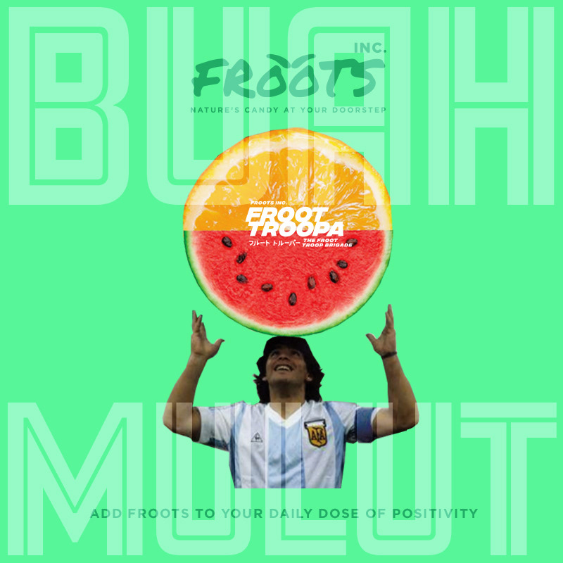 Design work for Froots Inc - Distributor of premium and local fruits bringing Nature's Candy to Your Doorstep. Design and concept using collage approach by SRVNT Creative Network.