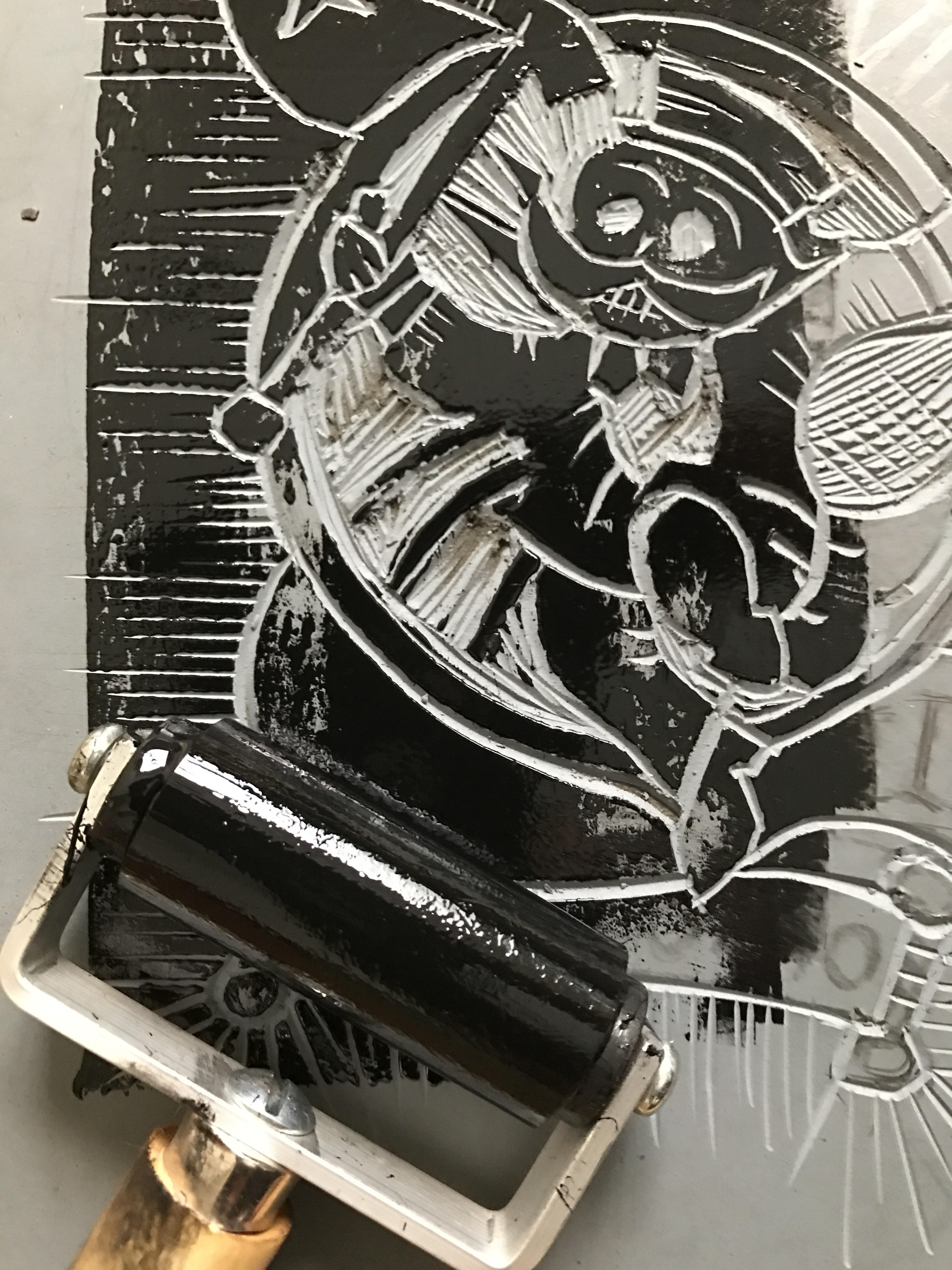 Living In The Kingdom of Too Much - Linoprint WIP
